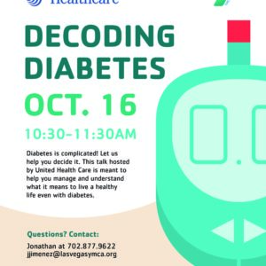 Decoding Diabetes Diabetes is complicated! Let us help you decide it. This ... 16 Oct 10:30 am - 11:30 am Durango Hills YMCA3521 N. Durango Dr, Las Vegas, NV 89129