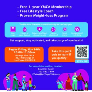 YMCA Diabetes Prevention Program Free 1-year YMCA membership Free Lifestyle coach Proven Weight ... 14 Nov 10:00 am - 11:00 am Durango Hills YMCA3521 N. Durango Dr, Las Vegas, NV 89129