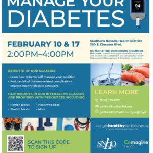 January Diabetes Self-Management Class Join us for our next Diabetes Self-management class! It is ... 21 Jan 2:00 pm - 4:00 pm Southern Nevada Health District280 S. Decatur Blvd., Las Vegas, NV 89107