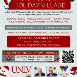 UNLV President’s Holiday Village Hosted by UNLV in partnership with United Movement Organized Kindness ... 13 Dec 10:00 am - 1:00 pm UNLV Campus - Lot R920 Cottage Grove, Las Vegas, NV 89119