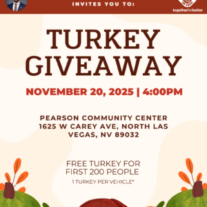 Turkey Giveaway, hosted by Commissioner McCurdy Free turkey for the first 200 people. ... 20 Nov 4:00 pm - 6:00 pm Pearson Community Center1625 West. Carey, Las Vegas, NV 89106