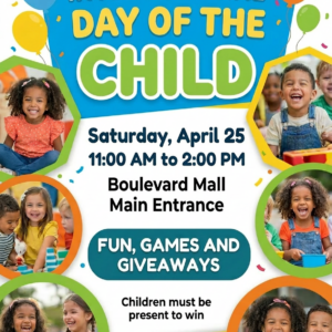 International Day of the Child Fun, Games, and Giveaways! For more info, contact: www.pedsafe.vegas ... 25 Apr 11:00 am - 2:00 pm The Boulevard Mall3528 S. Maryland Pkwy.; Las Vegas 89169 NV